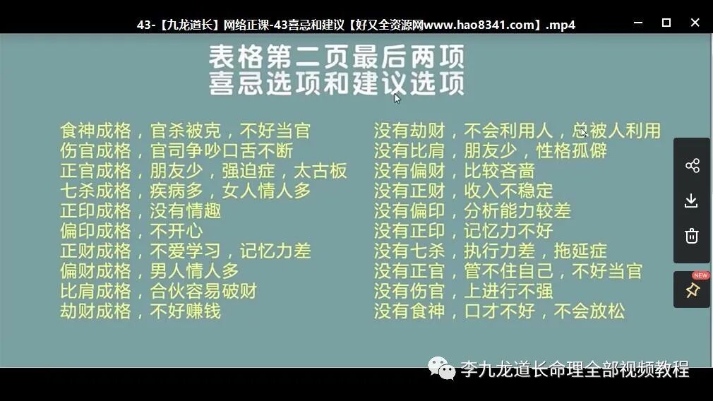 目前,九龙道长的视频教程,包括实站班26集,网络正课185集,网络直播课22集,优秀学员笔记12份。 九龙道长三个小时教你学会看八字-九龙道长三个小时看八字第三集-九龙道长三个小时学八字-