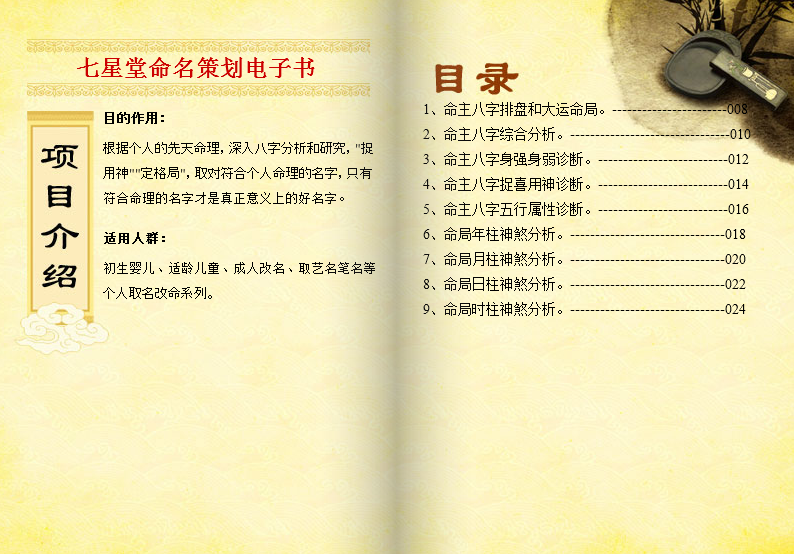 4、最全面:方案包括三十多个项目内容,有助以后小福主学习、健康、求财事儿选择等方面的指导。