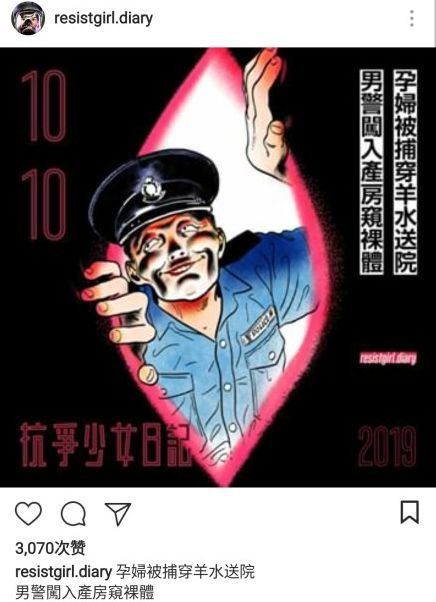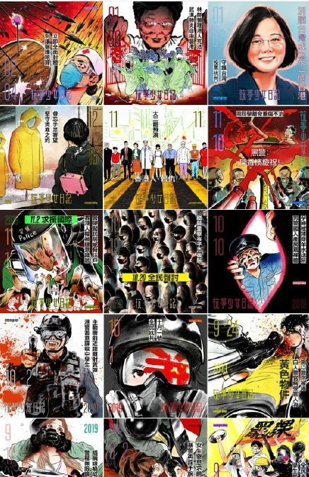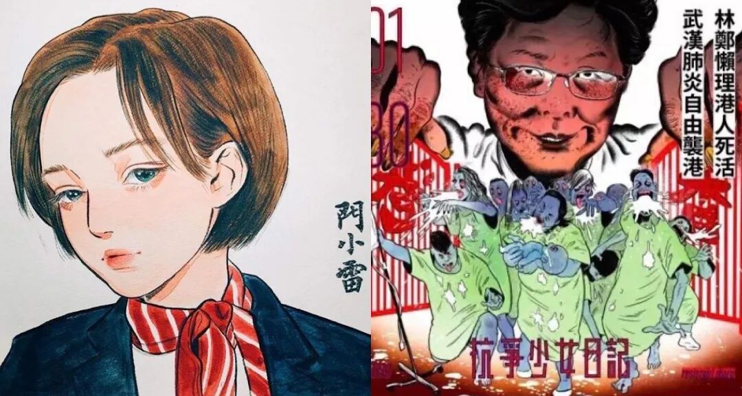 35岁,时间线来到2019己亥年,伏吟她的时柱,共振力度加强,仍然是2亥冲1巳,伤官见官又来了。这一年不像2007丁亥年那样有领导、公司可以怼,伤官的愤懑之气无处发泄,终于,她把矛头对准了政府,用重口味的画风支持香港暴徒,抹黑香港警察,把武汉这个英雄城市画成了丧尸围城。