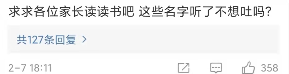 有言语激进的:“求求各位家长读读书吧!这些名字听了不想吐吗?”