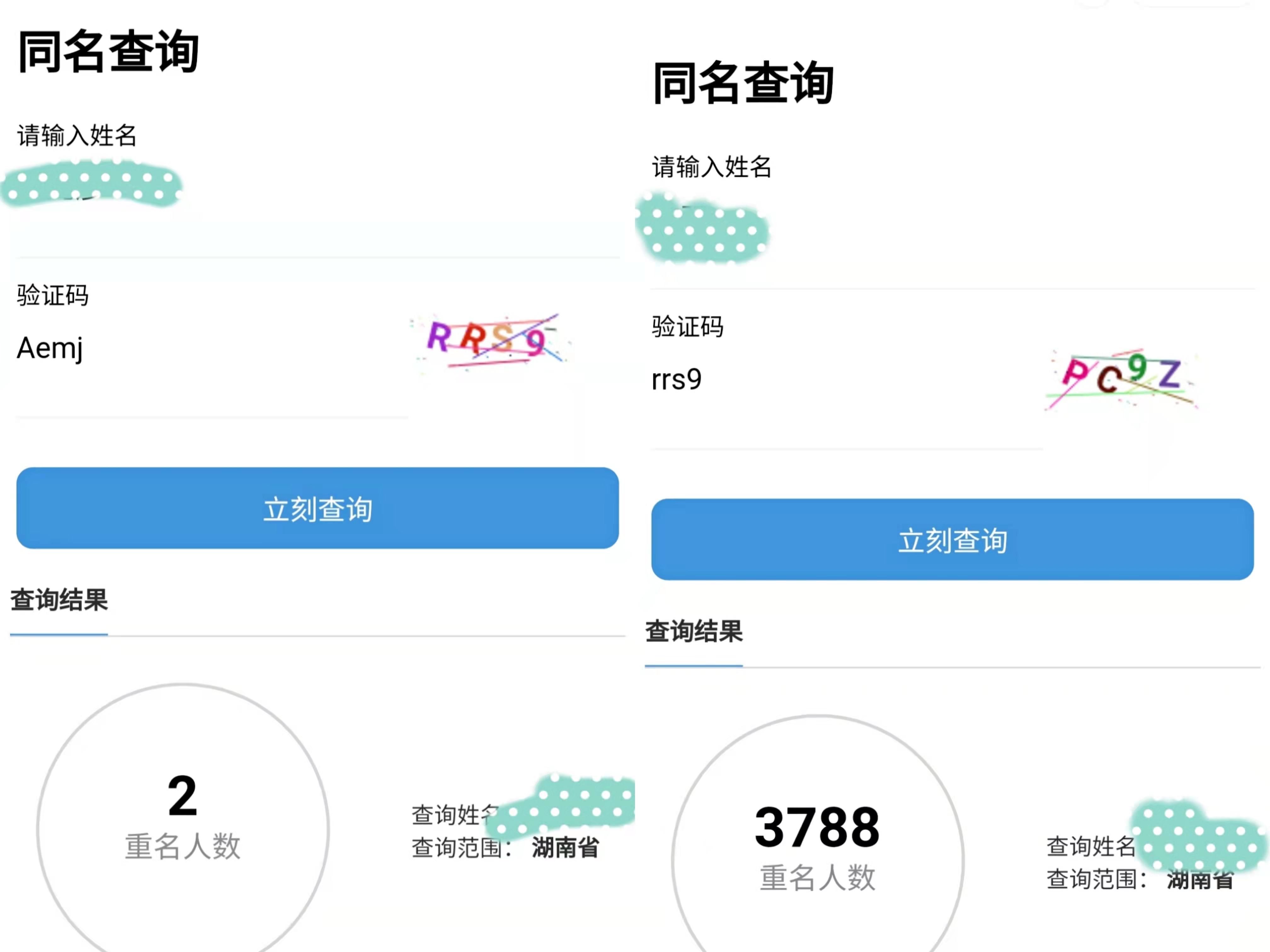 其实我们更多人都只是普通人,我的名字全省只有2个(查询方式见下文),我老公名字全省有3000多个,但我也没有因为少见的名字而出类拔萃,他也没有因为常用的名字而平凡无奇。