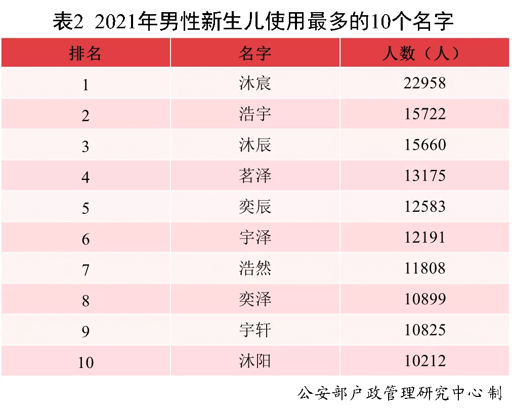 再来看看全国的结果:公安部户政管理研究中心依托公安部人口信息管理系统,发布的2021年全国姓名报告。