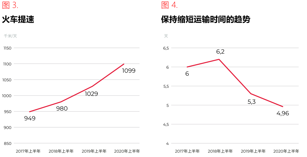 中欧班列在哈萨克斯坦-俄罗斯-白俄罗斯的过境走廊上的车速提高到近1100公里/天,货物交付时间比2018年之前缩短了1天多。