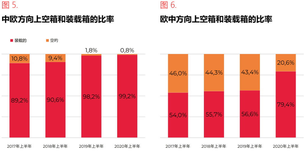 通过各个维度上的努力,中欧班列回程的空载率从去年上半年的43.4%,降低到今年上半年的20.6%,实现“空载腰斩”。