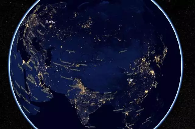 有一次,成都物流办在推介会上展示了一张谷歌夜视地图,成都以西到莫斯科以东的大片区域,夜晚只有零星的灯光。
