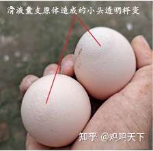 冬季蛋壳突然发白,应结合粪便、呼吸道情况,关注禽流感等疫病;如果刚开产鸡就出现大量软蛋、蛋壳差,且没有高峰,或褐(红)壳蛋鸡颜色着色不均匀,要怀疑传支;鸡群突然软蛋多,考虑应激、新城疫、钙磷水平(石粉含钙量)或不平衡、或饲料内VD等出现问题;蛋壳大头粗糙、变薄,考虑传支、热应激或鸡老龄化;鸡蛋小头透明样变(与周围界限分明,且粗糙),考虑滑液囊支原体;初产蛋鸡蛋壳颜色呈土黄色,且有白色尿酸盐沉积,怀疑石粉添加过快或过量使用药物造成的痛风,检查乳头饮水器出水量,这样的鸡群通常乳头饮水器出水不超过25毫升/分钟;如果用灯光照射鸡蛋,发现蛋壳透光,有大量的亮点和黑斑,怀疑蛋壳质量或鸡蛋内膜出现问题,一般是传支或其他疫病造成输卵管受损,或饲料钙磷水平、钙磷比例不当,或饲料内添加非常规蛋白原料,影响钙磷吸收造成。(未完待续…)