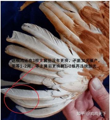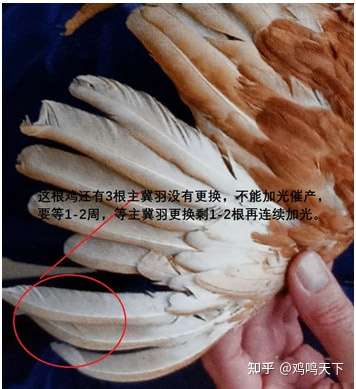 如果鸡群在150天前后还有1-2根主冀羽没有更换,说明你的鸡群产蛋与营养不匹配(开产早或营养水平低),也预示着这个鸡群产蛋期会掉毛厉害,羽毛质量差。此时结合开产时节、天气状况、饲料大配方、采食量大小就可以找出问题的关键,及时采取高营养饲料进行补救(添加鱼粉等)会有一定效果。