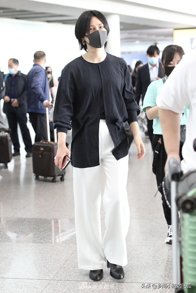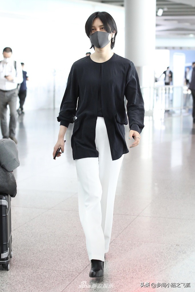 12日,尚雯婕现身北京机场。照片中,尚雯婕身穿圆领黑色长袖,简约不失设计感,搭配白色高腰休闲裤,整体清爽且舒适。