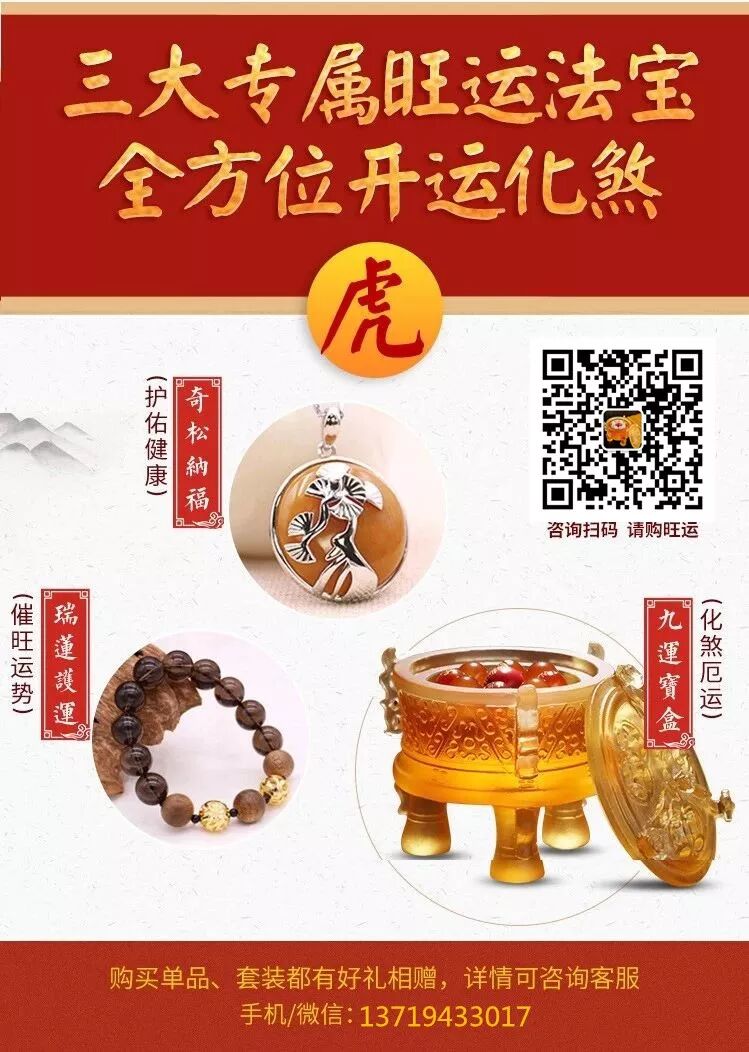 七、生肖虎·规避风险·转运锦囊1破财运一白星入命,今年属虎人求财欲望非常强烈,生肖虎若踏实勤奋,是能赢得好财运的年份。但本年的求财变数在于“地丧、丧门、孤神”三颗不利星神影响,生肖虎求财进财的同时,意外灾祸、不吉之事突然降临,导致破财败财,财来财走,因此属虎人今年凡事要注意留有后路,以防突生变故,让自己处于被动损财的不利局面,家人和自己的健康安全也要格外重视,避免人财两空。希望化厄转运,稳定财运的朋友,宜恭请“瑞莲护运”转运吉祥物化解凶曜破财的煞气,同时催旺正偏财运。