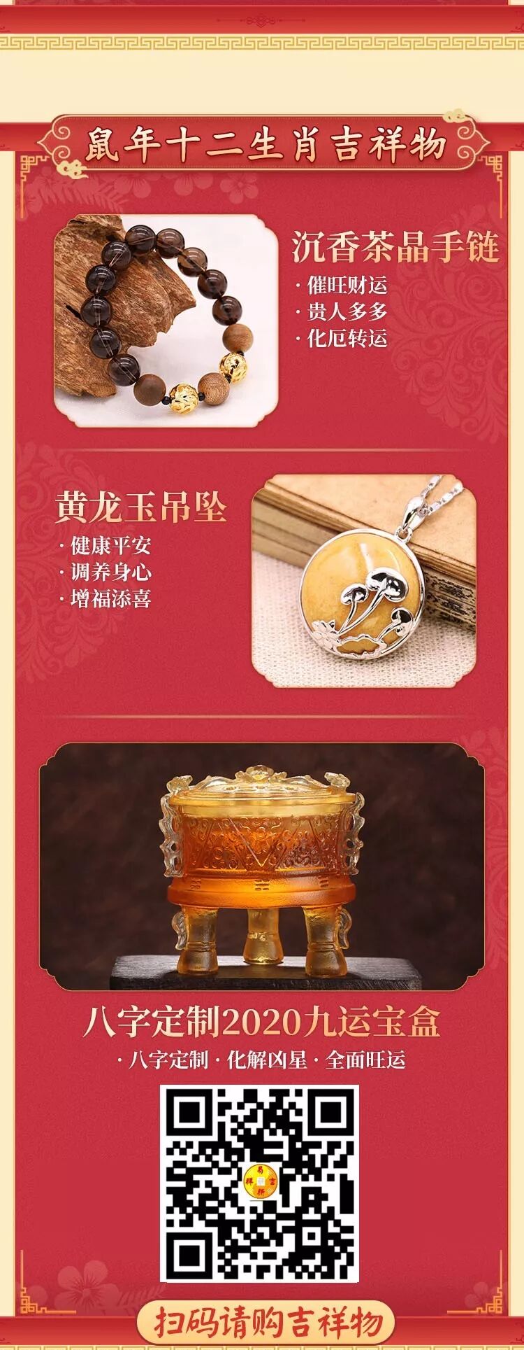 健康运势健康方面,今年因为太岁五行为水,生肖猪五行同样为水,水太旺,生肖猪人士的身体健康不佳,容易出现如肾脏或泌尿系统方面的疾患。日常如果有不舒服的地方,要及时去医院检查,不能拖延病情。开车一族的生肖猪人士,水旺也主动荡,今年在驾驶时要留意交通安全,避免疲劳驾驶,否则会带来意外灾祸。裸辞或创业也建议三思后行。旺运建议庚子年,属猪人水过旺,很容易有肾脏或泌尿系统方面的疾患,要多注意自己和家人的身体状况,有恙及时就医,平常坚持适当锻炼,最好及时做体检。今年尽量避免参与危险性运动,宜随身佩戴“运转福禄”来化解刑太岁的煞气,避邪挡灾保健康。此外2020年生肖猪没有健康方面的吉星拱照,健康堪忧,建议生肖猪提前咨询易奇八字的命理专家,做八字流年详批,找准趋吉避凶,转危为安的方式,避开容易发生意外灾祸的时间段和方位,护佑全家人整年逢凶化吉,身康体泰。扫码下图有赞请购2020年吉祥物