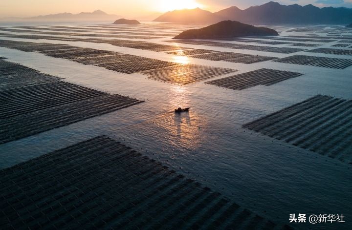 在福建省宁德市霞浦县三沙镇,渔船在夕阳余晖中归港(2020年11月26日摄,无人机照片)。新华社记者 宋为伟 摄