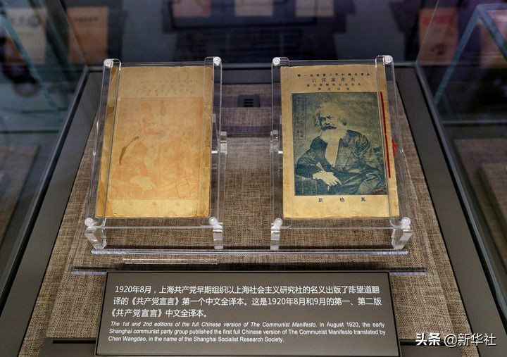 中共一大纪念馆展出的由陈望道翻译的《共产党宣言》第一个中文全译本(2021年6月1日摄)。新华社记者 刘颖 摄