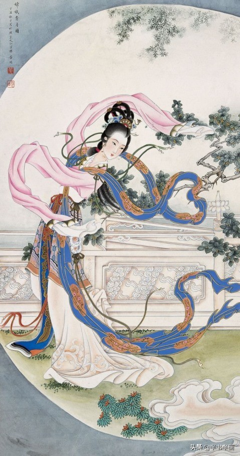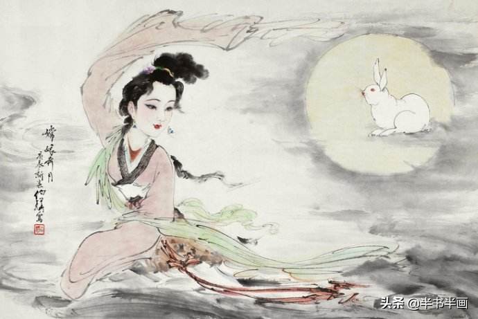 提到中秋,自然会联想到月亮、月亮里的嫦娥、吴刚和桂花酒。本期欣赏国画里的嫦娥。