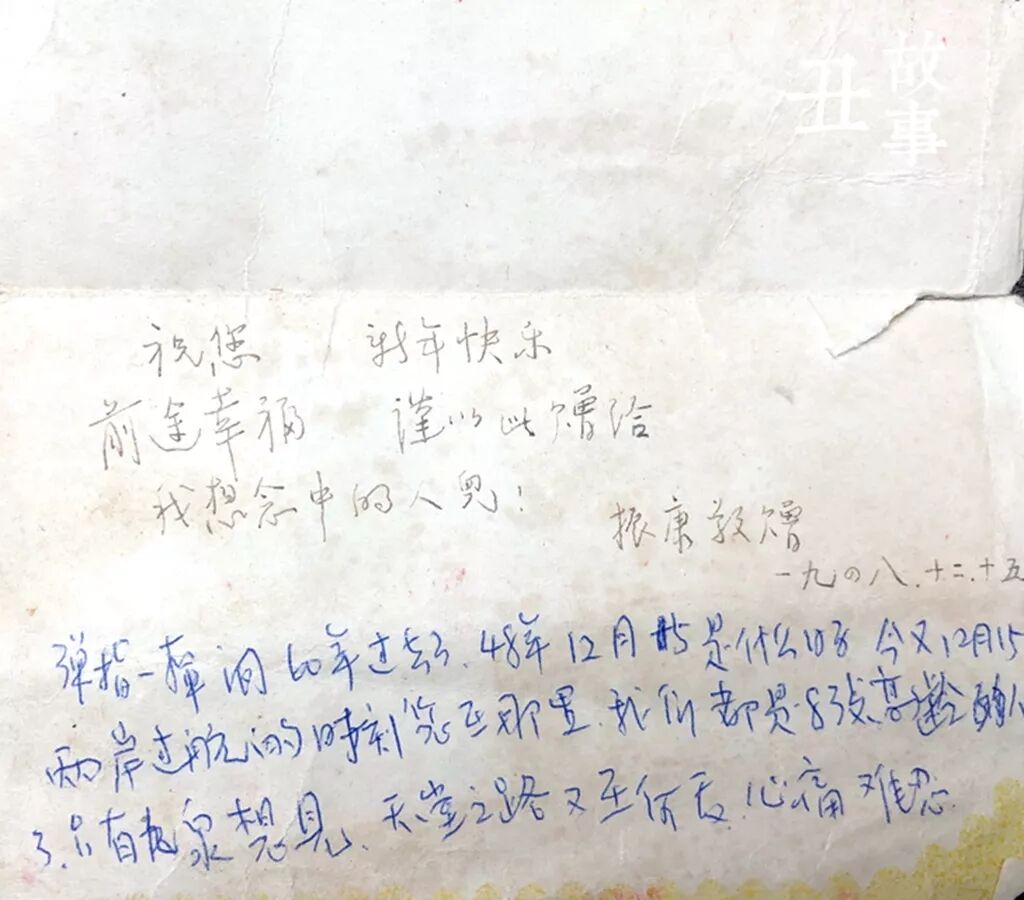 那天晚上,我拿出1948年12月15日振康送我的那张贺卡,反复抚摸,那是他留给我的仅存的笔迹,他最后的情话。