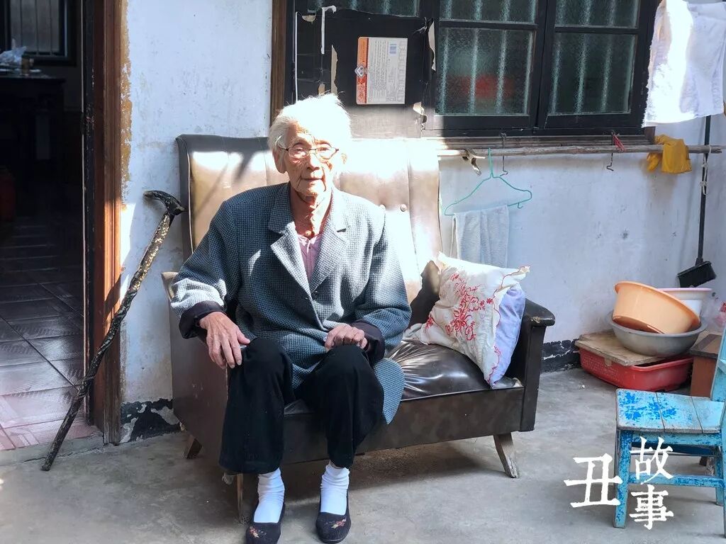 早上9点多,阳光洒满小小的庭院,93岁的徐婉婵奶奶躺在沙发上晒太阳。见我进来,保姆扶她坐起来。