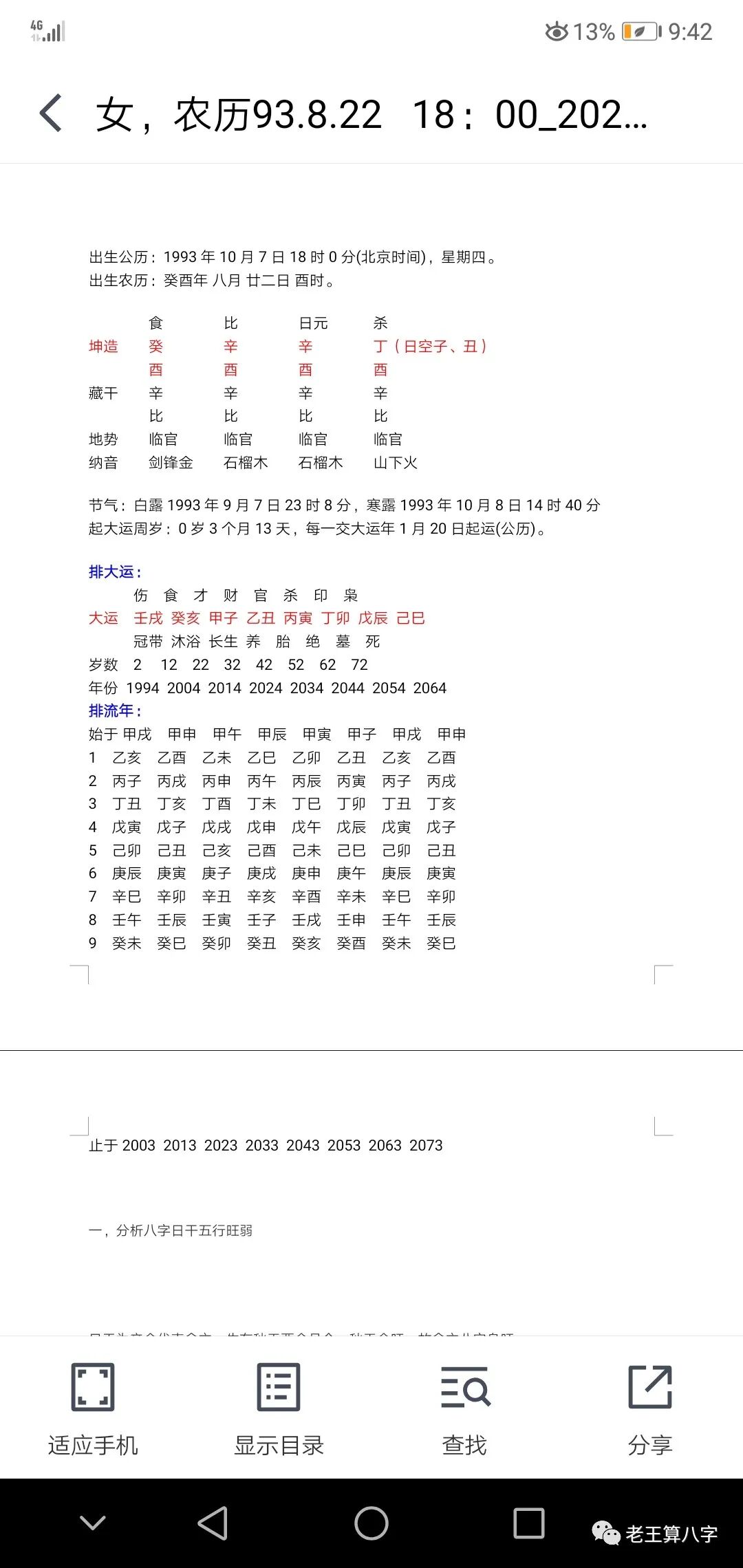 一,分析八字日干五行旺弱日干为辛金代表命主,生在秋天酉金月令,秋天金旺,故命主八字身旺。八字讲究五行平衡,身旺需要抑制,水木火能够抑制日干辛金,故水木火为用神。身旺不喜再逢生扶,土金能生扶日干辛金,故土金为忌神。二,分析事业财运日干为辛金代表命主,辛金为饰品之金,喜太阳光照,则能更璀璨夺目,也喜见水清洗则更光亮。太阳为丙火,但命主八字有丁火但没有丙火,丙火为正官,正官代表事业和工作,八字喜正官而不见正官,故会影响到你未来事业的发展。幸好年上有癸水为雨露之水,能清洗辛金,使辛金更光亮,癸水在八字中发挥了很好的作用。癸水为食神,癸水泄了日干辛金,为食神泄秀,说明命主聪明伶俐,也有气质,有才华。食神代表技术技能,一技之长等,食伤泄秀,说明命主未来可以在技术领域内工作会更好。财星代表钱财和经济,财星五行为木,但命主八字五行没有木,缺少财星,且命主八字一片旺金比劫,八字身旺无财可担,且比劫有夺财之患,故也不太适合经商或自主创业。比劫代表命主的同事朋友同学同辈合伙人等,故也不要和他们合伙做事或合伙,防止被他们坑骗。也不要炒股赌博或做其它投机取巧的事,否则会有破财之患。八字身弱比劫旺,体力劳动居多,所以命主更适合上班求财,食神泄秀在八字中发挥了很好的作用,则如果能从事与技术相关的工作则会更好。食神生财,故食神又代表财源,食神发挥了很好的作用,也说明命主未来虽然不能大富,但过小康生活也会绰绰有余,一生也会钱财不缺。八字身旺喜水木火克身平衡八字,水为北方,木为东方,火为南方,故命主到以上方位发展求财对你来说,会更好。三,分析大运运势32-42岁走乙丑大运,大运乙木为财星代表钱财和经济,乙木财星本为用神,但是乙木坐了丑土,财星无根虚浮,故命主在这个大运里财运平平,不利求财。运支丑土为金库,使八字酉金忌神更旺劫财,也有不利求财之象。故命主在这个大运求财一定要谨慎,不要投资也不要炒股或外借钱财,否则会有破财之患,唯有脚踏实地,稳步向前发展才会更好。42-52岁走丙寅大运,为木火旺的大运,八字身旺金旺喜见木火克身,故命主在这个大运里事业工作及财运会很好,故要好好把握住机遇,积极努力大胆去追求,就一定会有很好的收获。52-62岁走丁卯大运,也是木火大运,为大吉大利的大运,可惜大运卯木去冲八字酉金,冲则有动,八字金旺木弱,故卯木反被冲坏,卯木为财星,本为用神,由于被反冲,而有不利求财之象,故要多加注意,谨慎行事才好。62-72岁走戊辰大运,为天干地支一气土旺的大运,土旺生金,使命主八字忌神更旺,晚年走忌神旺的大运不利身体健康,故要多加注意才好,只要平时多加注意,积极做好预防,故也不会有什么大问题,也会平平安安一生。四,分析近期流年运势今年是壬寅流年,为水木旺的流年,水木旺则财星更旺,壬水为伤官,伤官生财代表财源,寅木为财星代表钱财和经济,今年壬水生了寅木财星,财运较好。且命主八字身旺有担财能力,故命主在今年交了鸿运,财运会非常好,所以一定要好好把握住,大胆积极去干,就一定会有不错的收获。明年是癸卯流年,也是水木旺的流年,癸水为食神,卯木为偏财,水生木,食神生财,财源不断,且财星又旺,命主八字身旺又有担财能力,所以命主在明年只要有追求,就一定会有很好的收获。2024年是甲辰流年,辰土为印星,八字身旺,不喜印再来生身生旺忌神酉金,故辰土本为忌神,但辰土虽为忌神,却盖头被甲木所克,忌神受制,所以命主在2024年事业工作及财运发展运势也非常不错,只要能好好把握也会有不错的收获。2025年是乙巳流年,为火旺的流年,火为官星,官星代表事业工作,八字身旺喜官星克身,说明命主在这年事业工作及财运会更好,事业也比较稳定。2026年是丙午流年,为天干地支一气火旺的流年,火为官星,官星代表事业工作及财旺,八字身旺喜官星克身,平衡八字,说明命主在这年事业财运方面会更好,所以只要命主积极努力大胆去干,一定会有丰硕的收获。总之,从命主八字原局来看,命主八字身旺比劫旺有夺财之患,故在求财上,就要脚踏实地一步一个脚印,稳步向前发展会更好,切忌莽撞行事和强求冒进,靠技术技能求财会更好。从大运来看,32-42岁走乙丑大运,运势平平,故在这个大运里,切忌贪欲贪求,能保持平稳发展,就会能立于不败之地。42-62岁走丙寅和丁卯大运,这个二十年都是木火旺的,尤其是在走丙寅大运的时候,财运会更好,只要能如理如法积极去追求,就一定会收获满满。从命主近期流年运势来看,近期五年都是木火旺的流年,木为财星,火为官星,八字身旺喜见木火克身,平衡八字,说明命主在近期五年内事业工作及财运运势较好,只要积极努力去干,就一定会有很不错的收获。