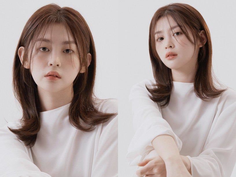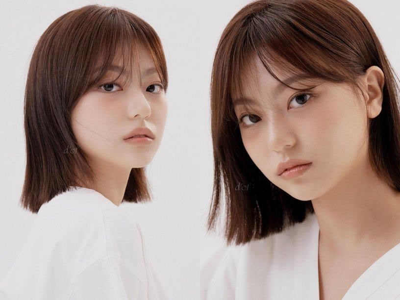 最后是一款刘海模板,这款YOUTH BANG发型重点在于细碎的碎发线条,沿着发际线在内层挑出碎发,再根据颧骨或是下颌剪出最修饰脸型的长度,不是空气刘海那种块状感,显得更加轻盈,绑发时、披发时都可以默默修饰脸型线条。