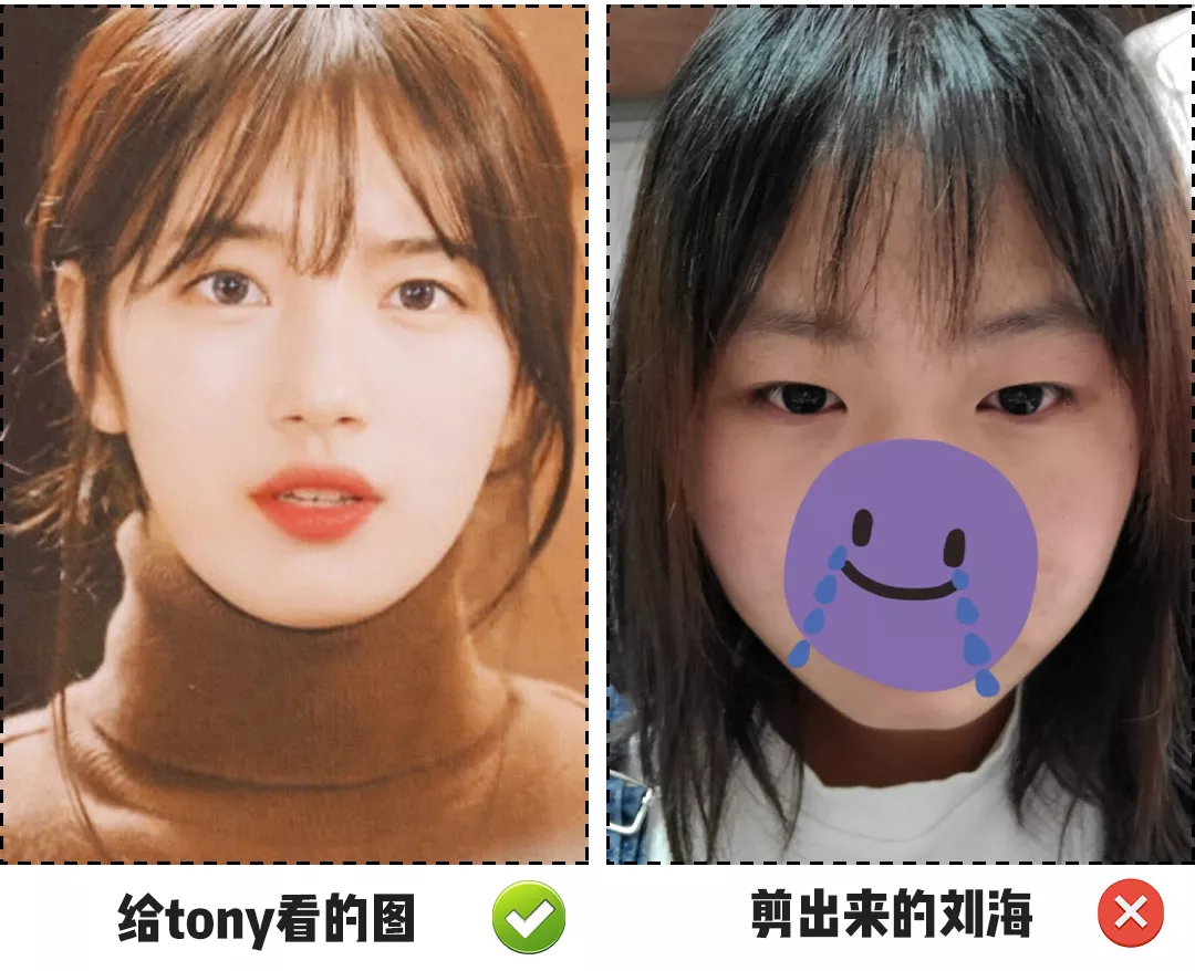 先来说说有剪刘海打算的姑娘,我给你们几个小技巧,让你们去找tony时不会再翻车啦~
