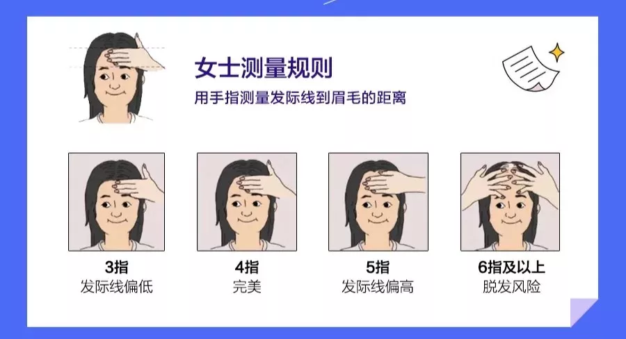 想知道自己的发际线高不高,就可以用手指捂住额头,如果超过了4指就属于偏高了~
