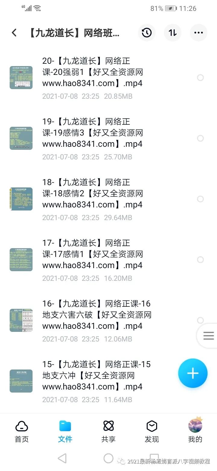 目前,九龙道长的视频教程,包括实站班26集,网络正课185集,网络直播课22集,优秀学员笔记12份。