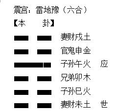 (4)占问婚姻、感情之事。此法古书未有记载,但实践中一如灵验,因此加上其中。如问感情发展、婚姻顺逆、谈娶论嫁、男女交往等等泛泛感情之问。占问感情当分男女,男占卦象得妻财持世、女占卦象得官鬼持世,则夫妻同心、夫唱妇随、夙有良缘、彼此恩爱;若男占卦象得兄弟持世、女占卦象得子孙持世,则恐会鸳鸯反目、齐眉难望、覆水难收。曾与某君茶座,席中他大喷口水,啧叹周易预测功效神奇,言曰亲身体验,问他因由,他说:“结婚之前我曾经非常的踌躇,害怕这段婚姻双方相处不能融洽,我不懂易的,但我知道易经能够预测,只有依照易经所教程序摇卦,得出卦象再对照书本看,原来是个“豫”卦,再看卦辞,豫乃欢愉之意,我想既然是欢愉,这段婚姻必定美满,于是决定接受这桩婚姻,现在已过十多年,生育有一对儿女,卦象确实没有骗我,果然是夫唱妇随的欢愉婚姻”,我笑:“那不是卦辞欢愉的缘故,豫也有犹豫的意思,真正的原因是妻财持世,那个“豫”卦恰好是妻财持世,不懂卦之人自占自解婚姻感情,男占若卦得妻财持世,必为好兆”。