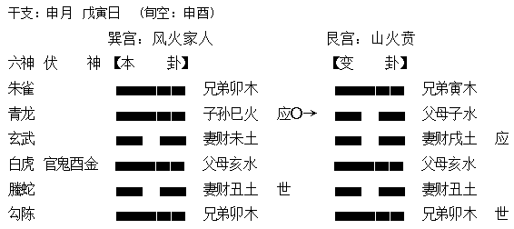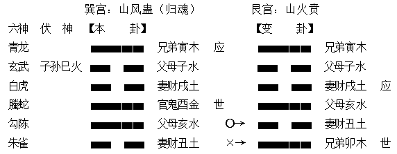 我说:“你是不懂易的外行人,外行人识卦自然有外行人的卦象显示方式,我已教你,你既欲自占自解,怎又跑来问我?”,他说:“我当时占卦的时候,就想自己若看得明白就自己断,自己看不明白就找你帮断,这样或许能保险些吧。你看这卦正是你所说的官鬼持世,是不是预兆这事要成了”?我说:“这卦生中带克,有空有破,明显是给内行人看的卦象,你想找内行人帮看卦的心思,早通过你的思维渗透进卦象里了,不能再按外行的卦理标准断事,所以持世的信息已经不再重要,此卦元神丑土发动回头克,动之徒劳不能生用神官鬼酉金,日月又齐来克伤用神官鬼酉金,看来此次升迁是没有指望的了,待过亥日之后便有结果”。之后在寅日出结果,职位归属他人所得,应在寅日,是应爻临寅木空亡,代表竞争者的亥水动而月破待补的缘故。