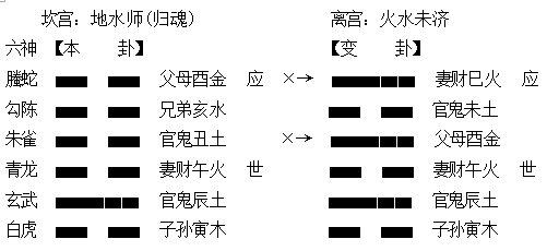 (5)古籍还记载有占疾病之法,注意此法之占有其独特之处,不是按六亲持世的信息昭示祸福,而是看卦象是否属于六冲卦,来断定病况趋势的好与坏。那什么是六冲卦呢?留意以下卦名:乾为天、坤为地,坎为水、离为火、艮为山、震为雷、巽为风、兑为泽、天雷无妄、雷天大壮,共此十卦叫做六冲卦,其余的都不是了。《增》书有曰:“占疾病者,若得六冲卦,近病可愈;久病难调,病人自占,若不得六冲之卦,一家俱可代占”。对于此占,我个人认为,当今医药昌明高效,既然身有疾患,应选择从医问药为最佳选择方式途径,所以此卜自占实际意义或已经不大,但因为此卜法允许亲人代占,用之于占问亲人病患安危参考,也可尝试一二,但千万不能用这个信息代替医生的诊断意见。