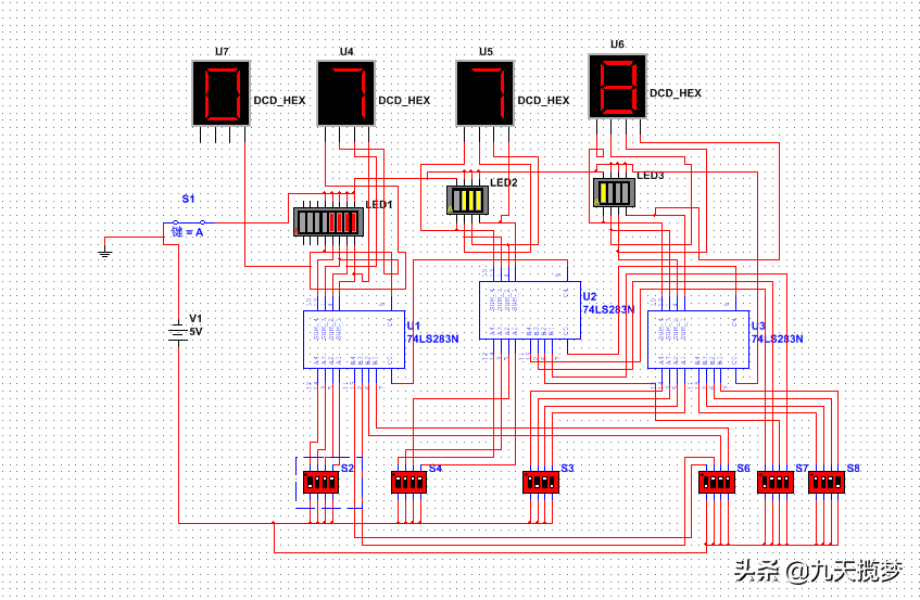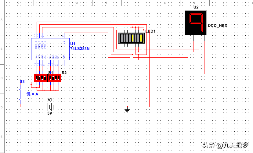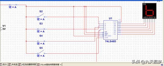 下面奉上64进制基本运算器电路供读者参考,只有输入,运算,输出。可以用74ls门电路搭建,也可以软件仿真。思考一下这是多少加多少等于多少?