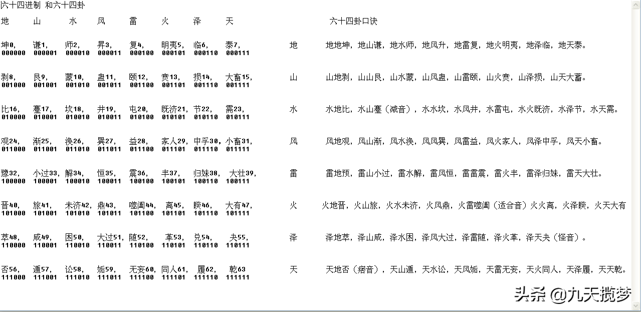 图1 左边64卦基本码表,右边速记口诀
