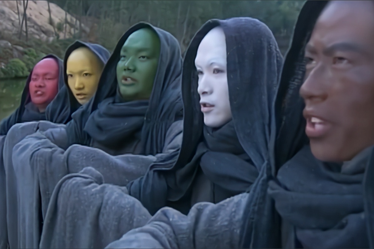 早早等在牡丹亭里的姜子牙,搭眼瞧去,但见赤、白、黑、青、黄五个颜色的妖怪,正团伙作案要烧楼呢。姜子牙哪能容他们得逞,当下仗剑披发,伸手指向天空,但听得‘轰隆隆咔嚓’一阵雷响,立时便破了五怪的妖术,并将正在作乱的五怪,打落在地。