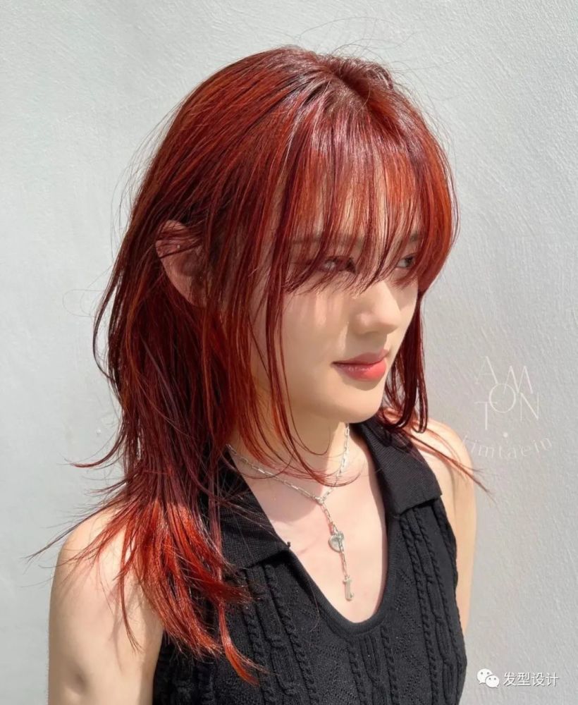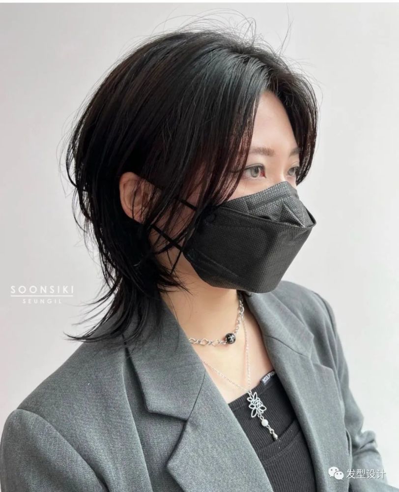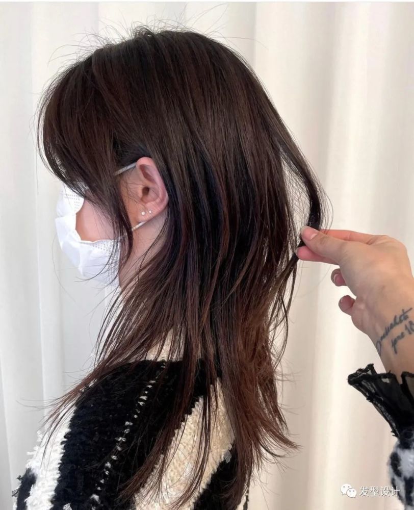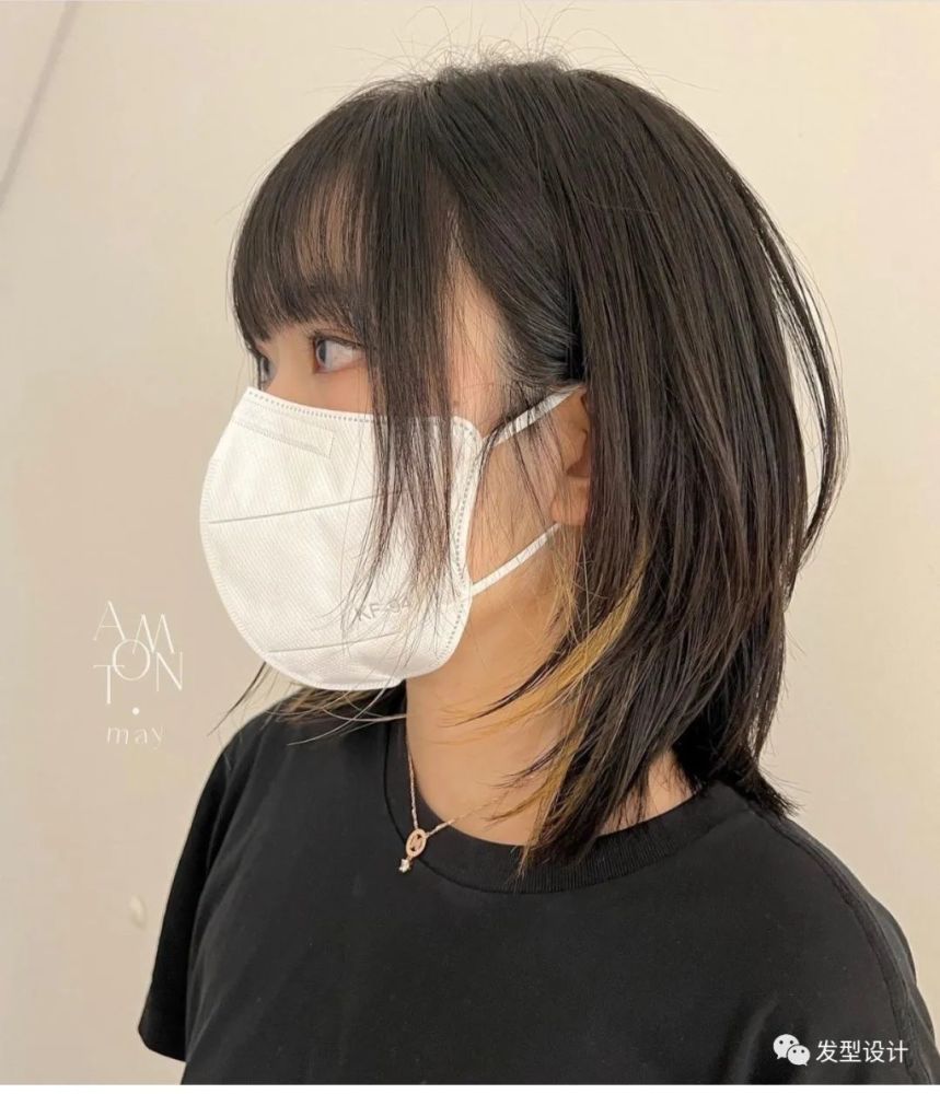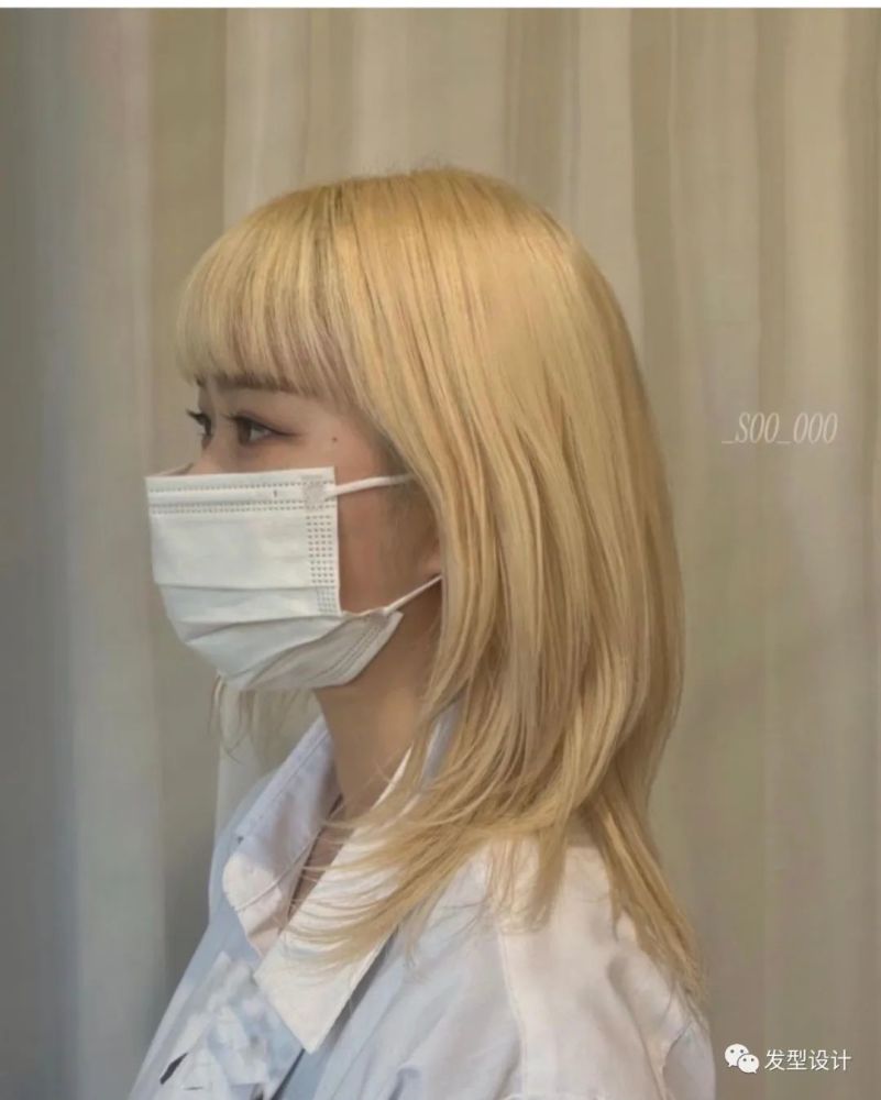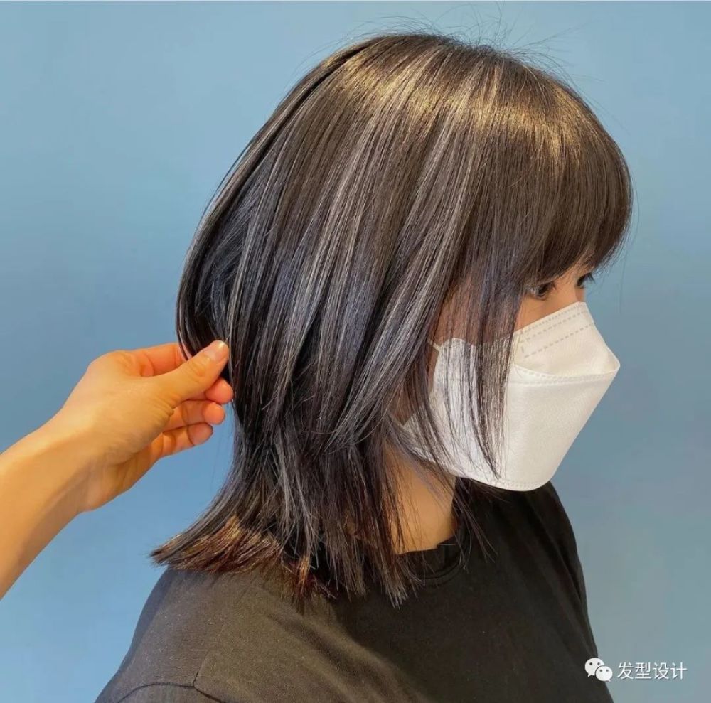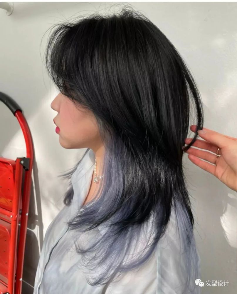 传统的搭肩发跟层次感小尾巴的碰撞,给人一种不一样的个性与魅力。搭配高级感满满的白金挑染色,真的很好看,刘海可以选择这种八字刘海的设计,修饰脸型,层次感的八字刘海设计可以很好的修饰颧骨,很适合颧骨高的女神,小尾巴搭肩发搭配这种冷色调的挑染发,给人整体的感觉会比较偏中性,所以就比较适合酷酷一点的女生,头发是尴尬期的女生可以尝试真的很不错。