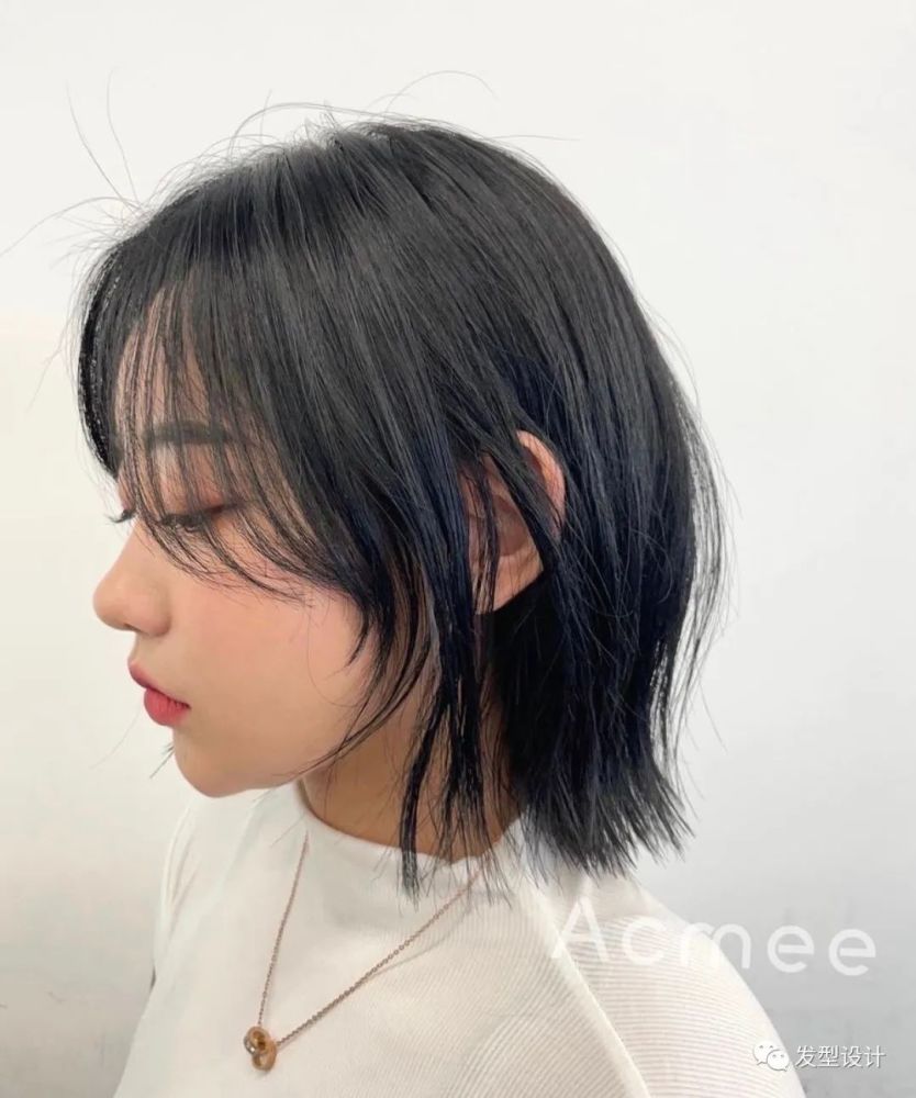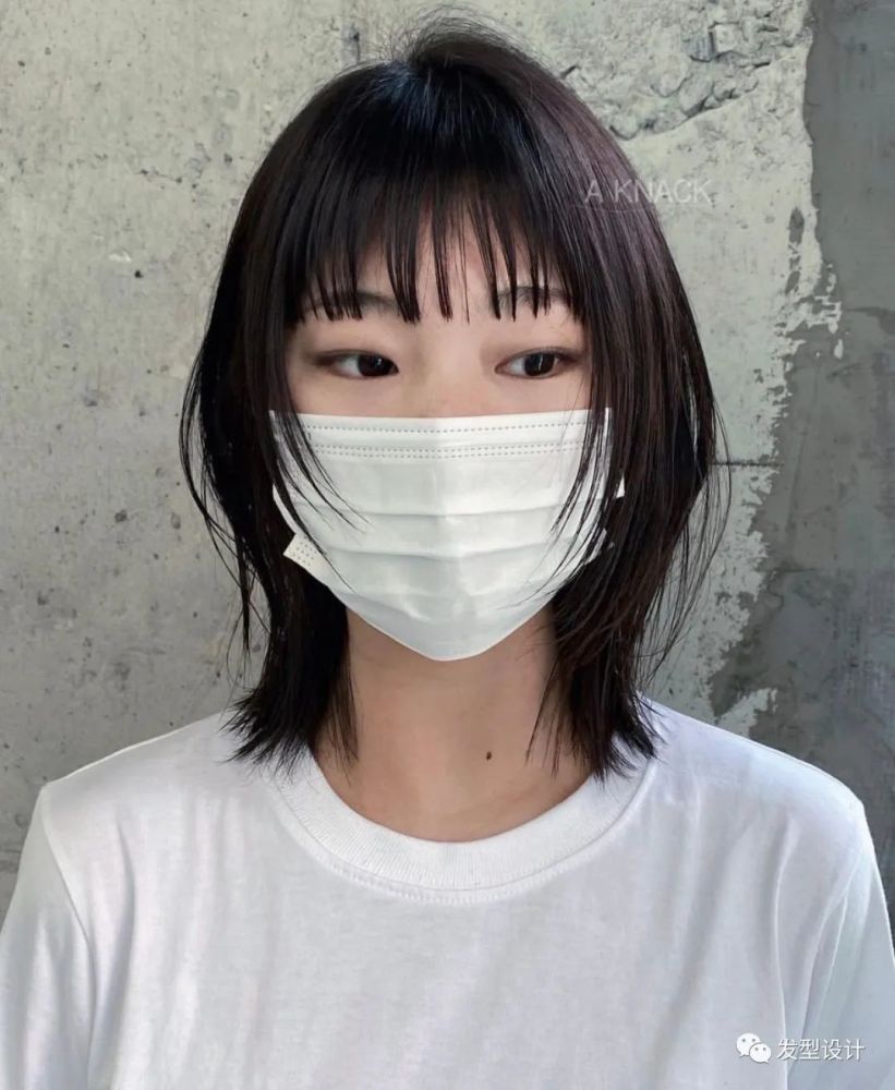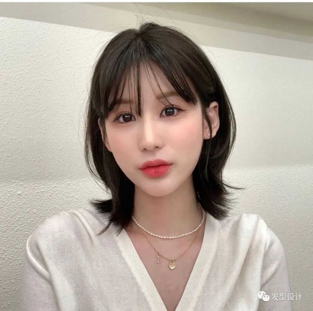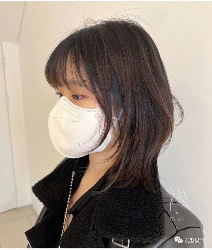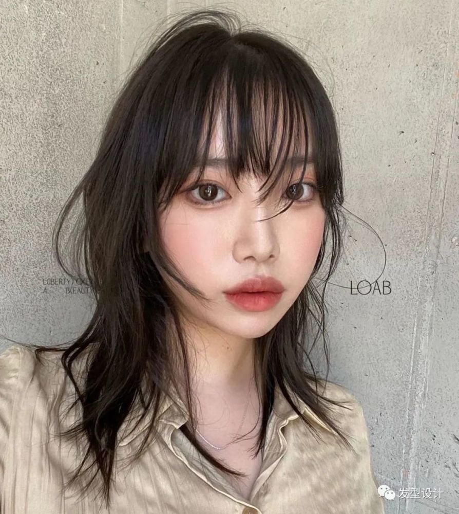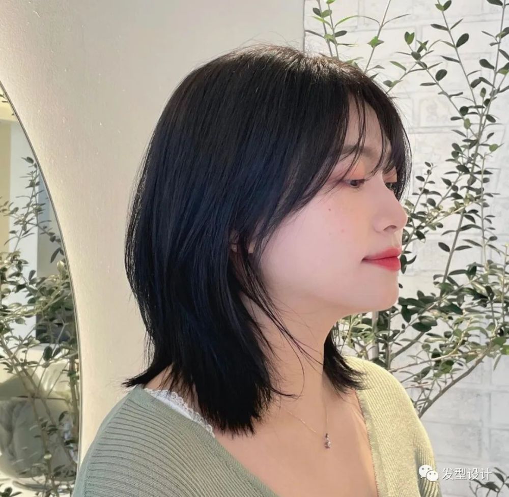 带点小尾巴的层次搭肩发,在发尾设计成有点外翘的形状,搭配显瘦减龄法式刘海,有点凌乱感的发型设计显得可爱娇羞,自然的黑发自然很显白,几乎适合所有肤色的女生,这款发型真的很适合发量多的女生,妥妥的气质高级感女神,上班白领气质绝配,刘海部分如果带点微卷更能修饰脸型,发色上也可以选择百搭显肤色的棕色系,好看时髦不显老。超级适合夏天哦。