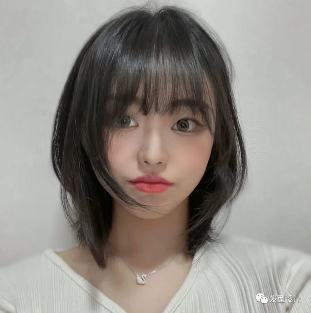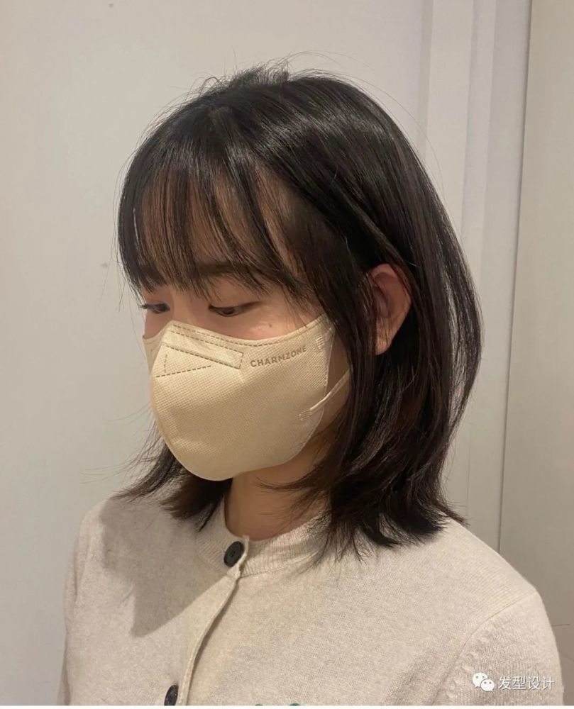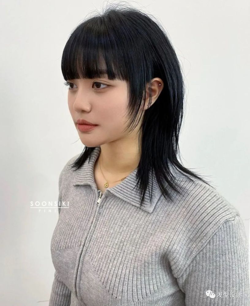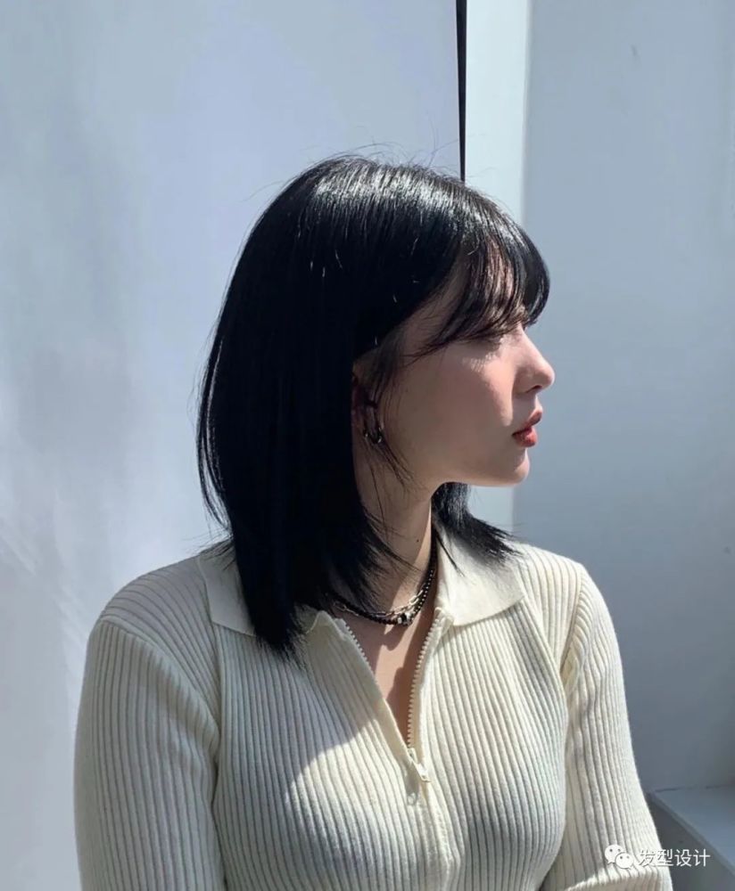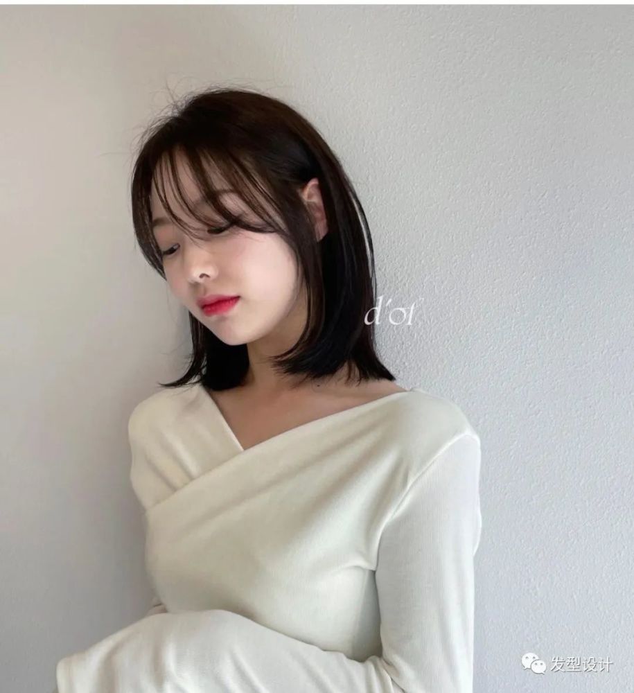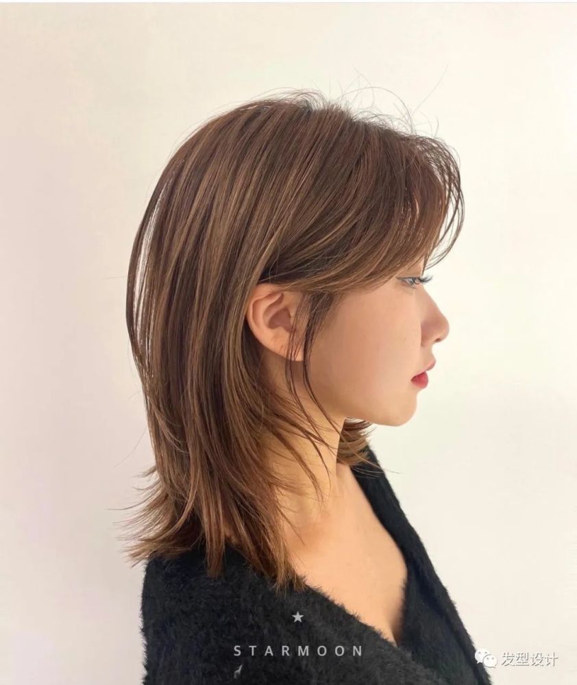 带点小尾巴的层次搭肩发,在发尾设计成有点外翘的形状,搭配显瘦减龄法式刘海,有点凌乱感的发型设计显得可爱娇羞,自然的黑发自然很显白,几乎适合所有肤色的女生,这款发型真的很适合发量多的女生,妥妥的气质高级感女神,上班白领气质绝配,刘海部分如果带点微卷更能修饰脸型,发色上也可以选择百搭显肤色的棕色系,好看时髦不显老。超级适合夏天哦。