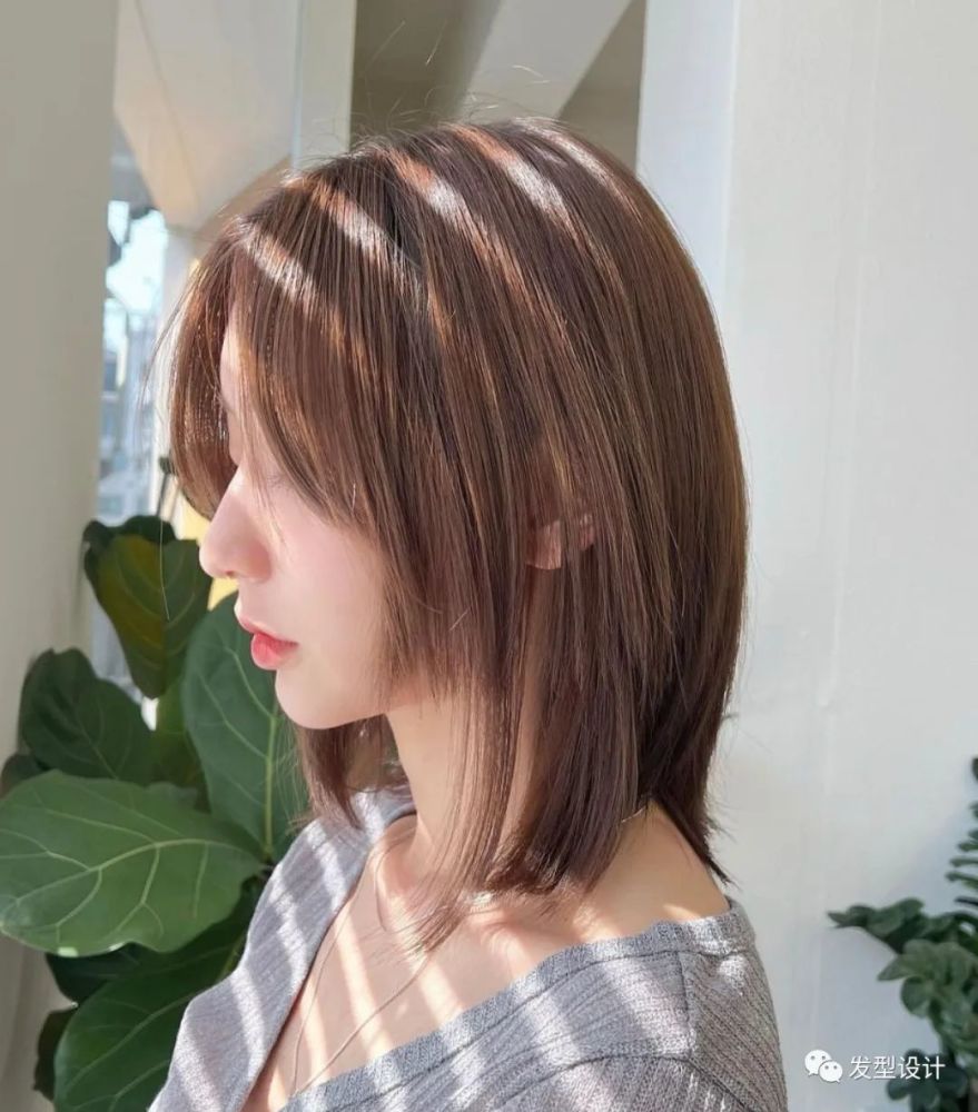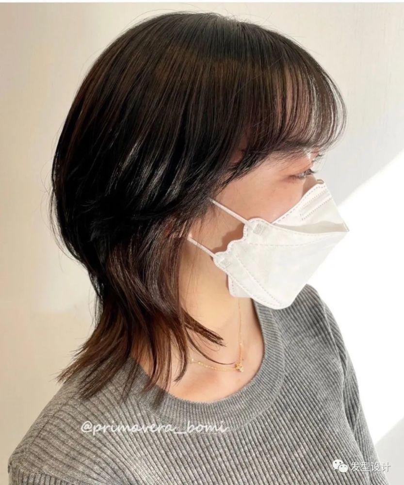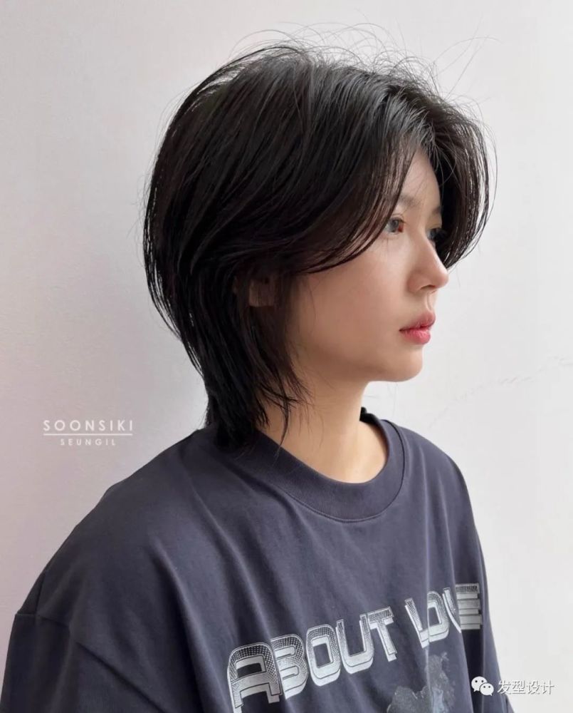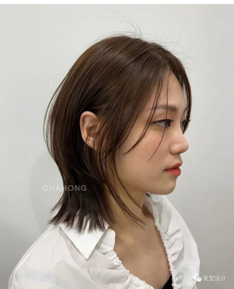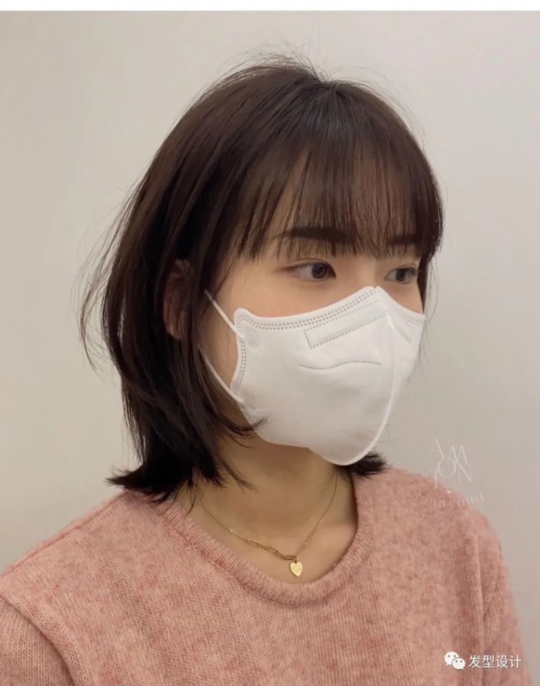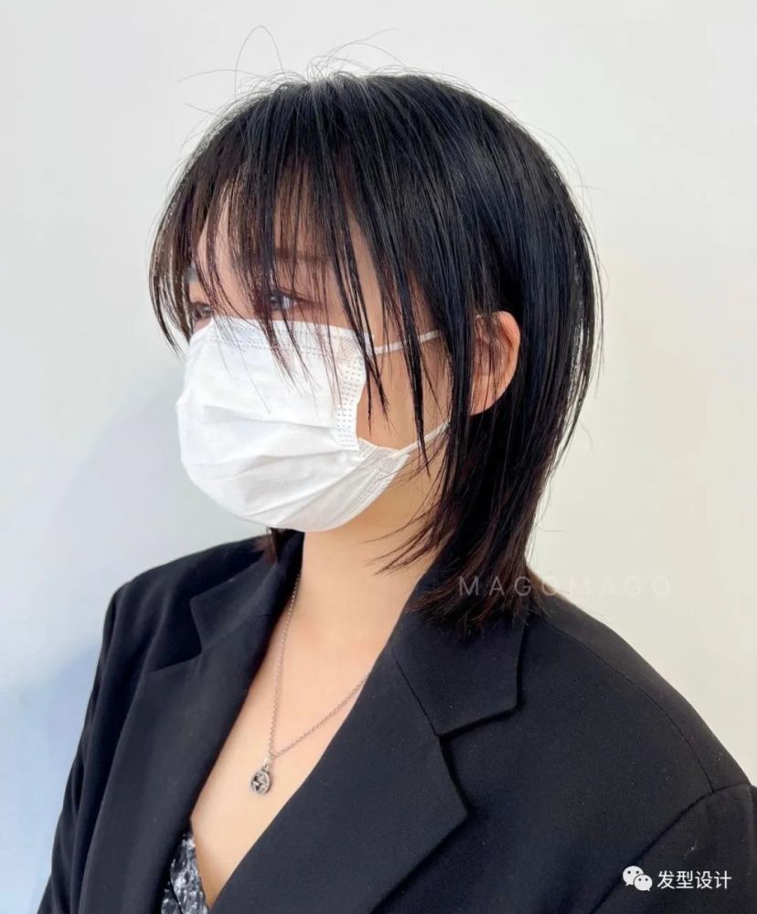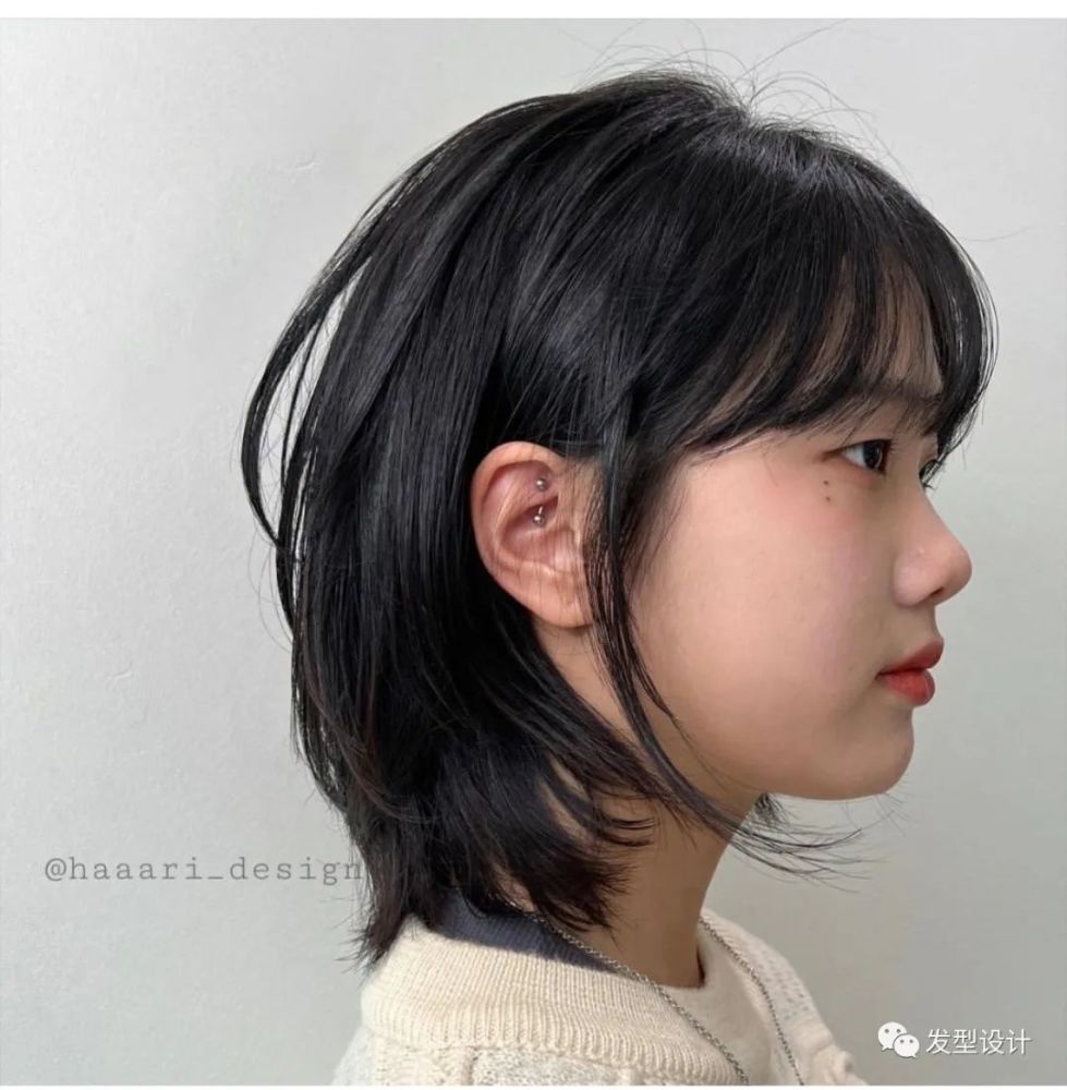 带点小尾巴的层次搭肩发,在发尾设计成有点外翘的形状,搭配显瘦减龄法式刘海,有点凌乱感的发型设计显得可爱娇羞,自然的黑发自然很显白,几乎适合所有肤色的女生,这款发型真的很适合发量多的女生,妥妥的气质高级感女神,上班白领气质绝配,刘海部分如果带点微卷更能修饰脸型,发色上也可以选择百搭显肤色的棕色系,好看时髦不显老。超级适合夏天哦。