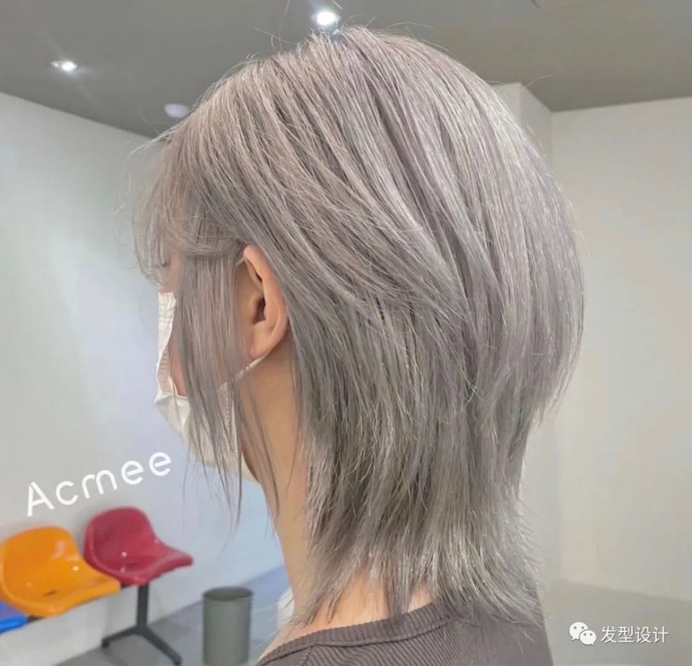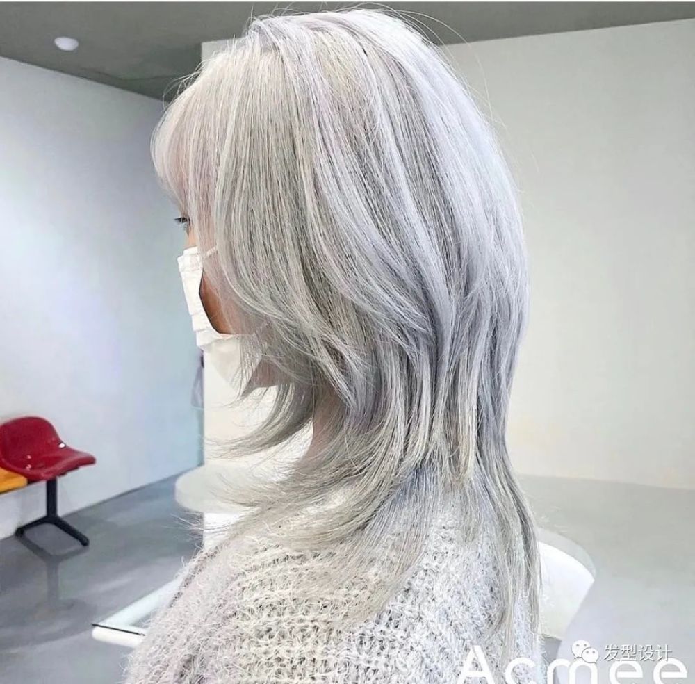 银白色除了个性就是个性,好看确实是好看,但是真的很挑人哦,适合批皮肤白皙的女生,没有那么日常,并且这个发色出门不带妆会显得奇怪,但是搭配这个小尾巴头真的超级绝美,就像漫画走出来的酷炫少女,喜欢尝鲜的时尚感女生可以尝试一下。