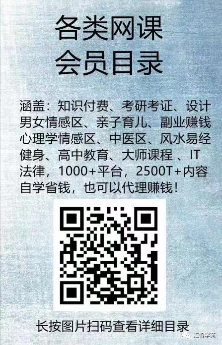 联系我进群学习,还有更多,百度云网盘分享,上万G课程加入社群可以一直免费看,每天会有上新课程提醒,随时随地随心看。欢迎喜欢学习的朋友加入,这里有一群爱学习的伙伴圈子,陪你学习,共同成长进步!让我们战胜未知,不在彷徨