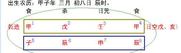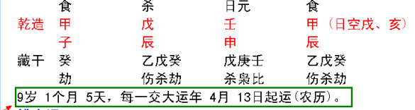 6、认识八字的胎元,八字的命宫。如图: