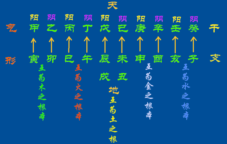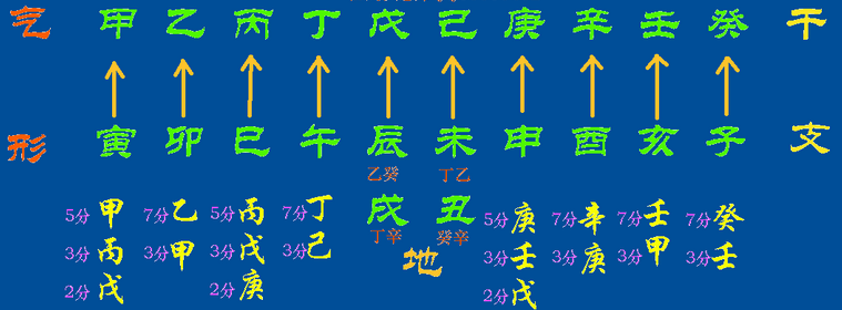 上写说明了干支的分别,如甲木为气,地支寅木为形;丁火为气,地支午火为形,余则类推。