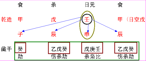 下图为日元与地支(内藏之干)的关系: