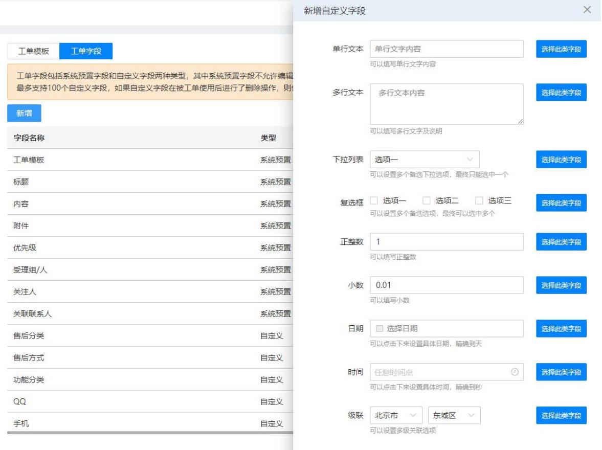 与此同时,喜鹊声声在线客户服务系统,支持个性化设置工单流转模板,比如,安装工单、实施工单、临后工单模板等。甚至个性化设置每个工单模板所需的字段,包括复杂场景下多层级联动式字段,多行文本、下拉框、日期、地区多级关联等全都支持。而且,在工单提交、处理、流转时,还可自由切换模板,灵活满足个性化、场景化、复杂化的客户服务需求。