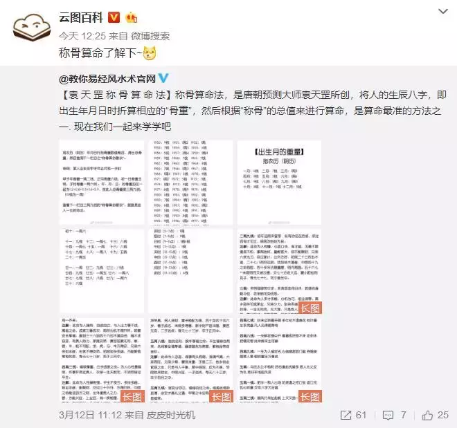 同样是知乎上精研中国传统星命学的@黎长波认为,算命本身是一种复杂的体系,而对于称骨算命这样简化的占卜,应当做一种民俗来对待。