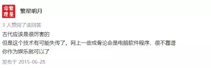 知乎@繁星明月也表示,称骨算命在古时候是一门厉害的占卜,但是到了现代该门知识或许已经失传。网上所谓的称骨算命很多都只是单纯的电脑软件程序不靠谱。