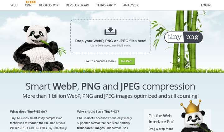 免费简洁的在线图片压缩网站,通过智能有损压缩技术来减小WEBP,JPEG和PNG文件的文件大小,如果要无损压缩的话,就得绕道了。基本原理是通过有选择地减少图像中的颜色数,存储数据所需的字节数更少,最终结果肉眼观察,几乎和原图没有区别,但它在文件大小上有很大的差异,不仅可以支持图片压缩,还支持动图压缩。