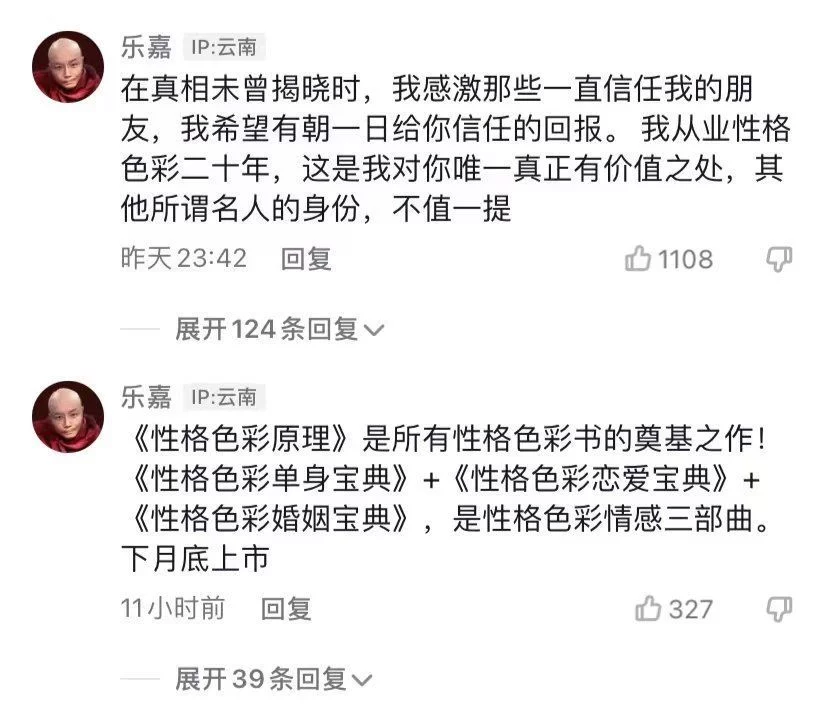 随后乐嘉还表示自己这些年在江湖上被各种诽谤造谣,从来没有出面发声,但是这些传闻的真相都会在自己的书里被揭晓。