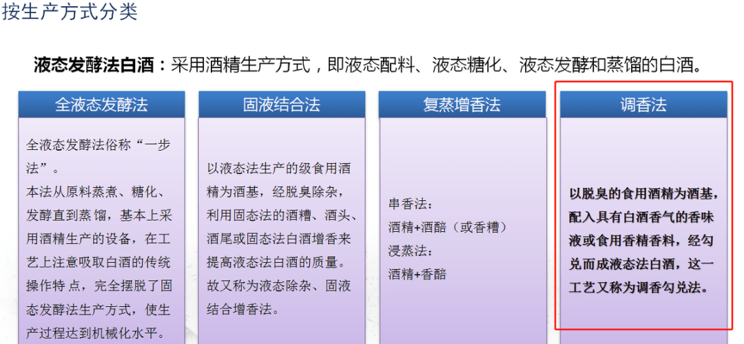 从新国标可以看出,同样是固态法白酒、液态法白酒和固液法白酒,和以前的定义已经完全不同,现在明确表示不直接或间接添加非自身发酵产生的呈色呈香呈味物质。