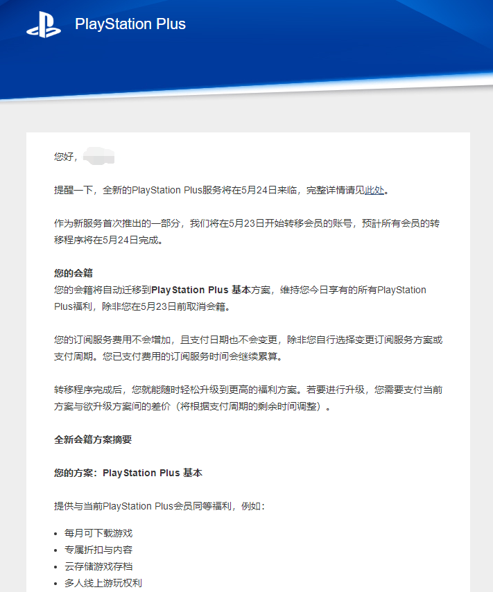 同时,中国香港索尼PlayStation Plus也开始陆续给用户发送邮件,告知全新的订阅服务即将到来。