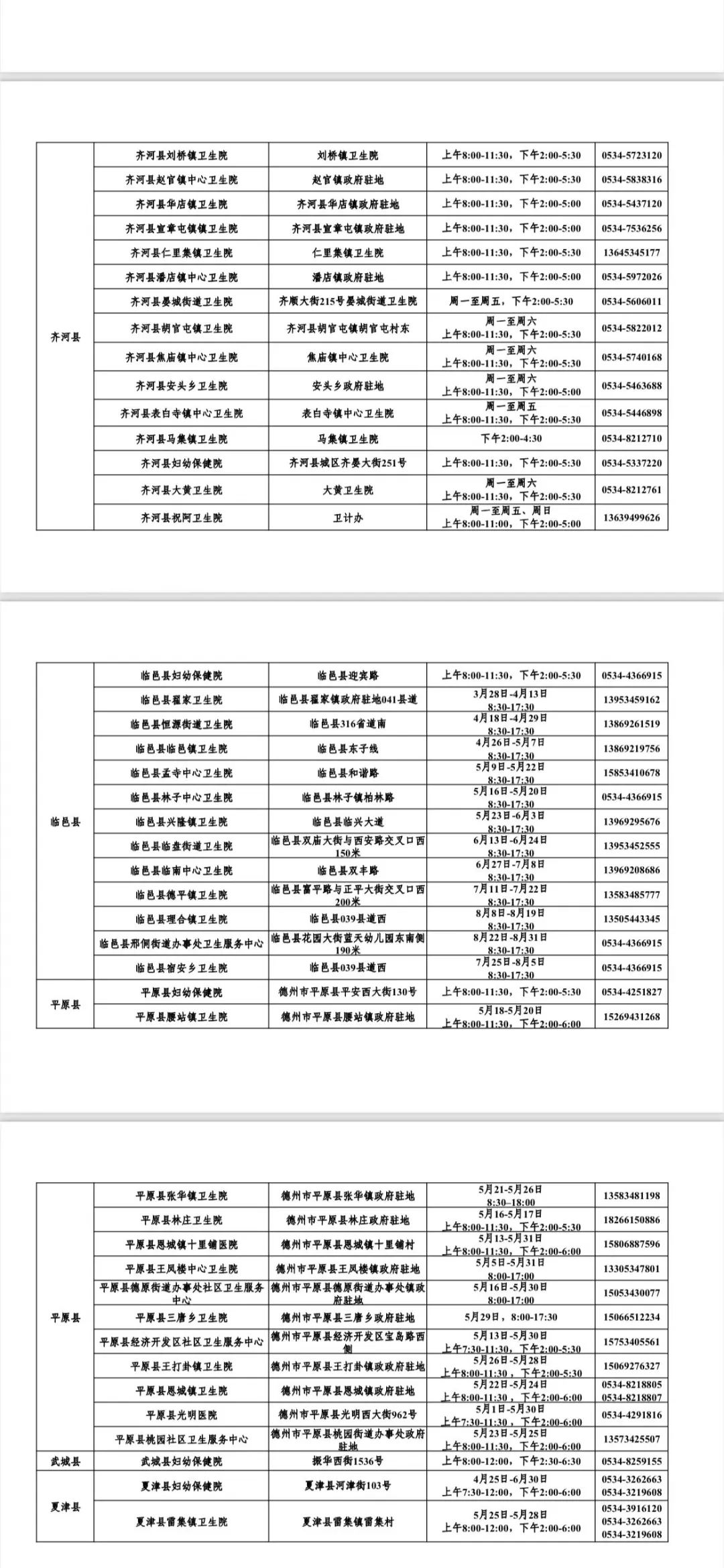 固定检查点:各县市区妇幼保健院,经济开发区和运河新区在市妇幼保健院检查。