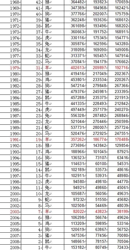 从数据可以得出,建国之后除了1955和1979年有特定历史原因外,剩下的三个羊年,都会经历一次小小的生育低谷。