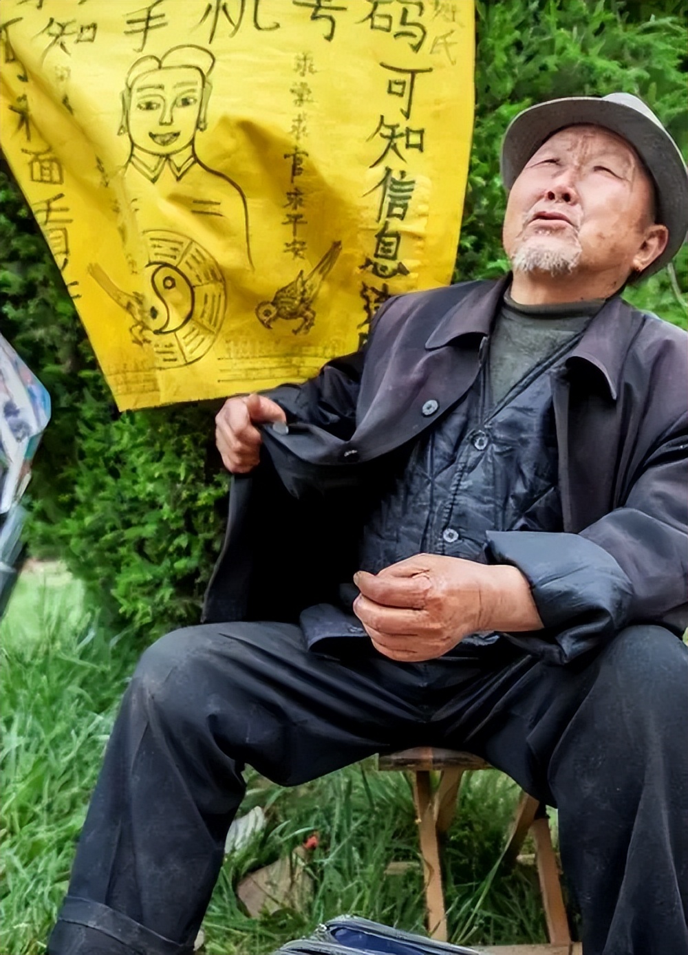 在那一群算卦的人中,半瞎子穿得最不正式,他穿着一个蓝黑色的短袖,原本是蓝色的,穿太久变黑了,一条大裤衩,头上顶着一个草帽。乍一看就像是刚从地里回来的庄稼汉一样。