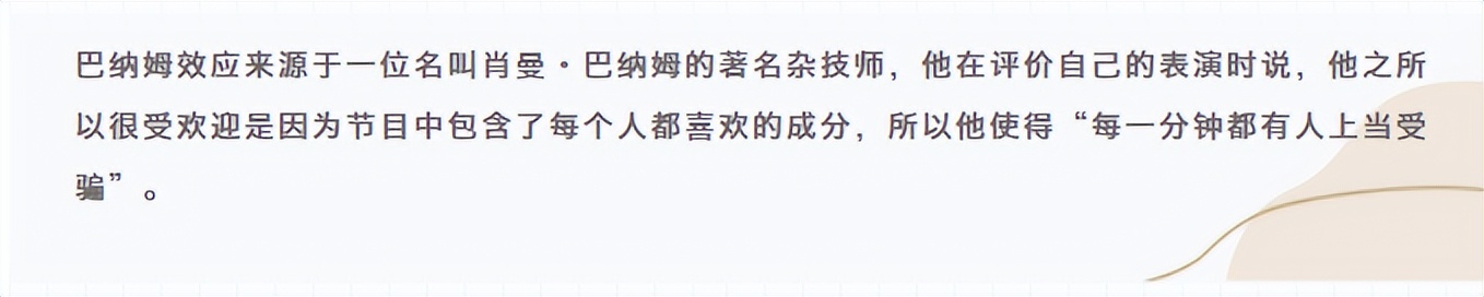 所谓巴纳姆效应,就是把模糊笼统、适用于绝大多数人的描述,当作对自己量身定制描述: